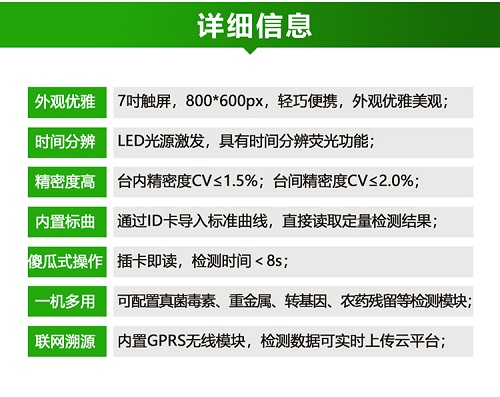 9、檢測項目:支持檢測真菌毒素檢測,根據用戶需求可升級轉基因、農藥殘留、獸藥殘留、重金屬等檢測模塊;