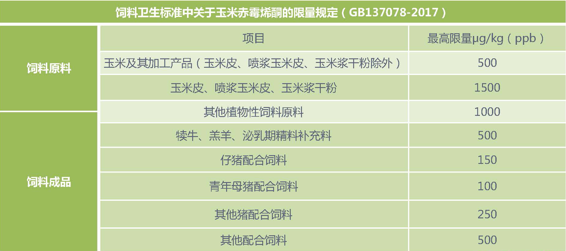 ◆ 新飼料衛生標準中玉米赤霉烯酮的限量標準
