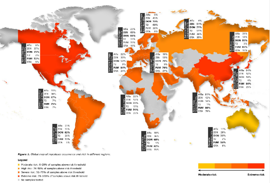 ◆ 霉菌毒素污染的全球分布