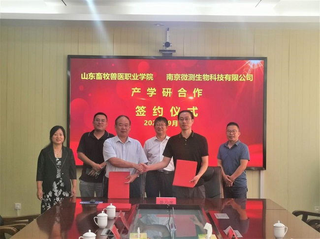 9月1日,南京微測生物科技有限公司與山東畜牧獸醫職業學院產學研合作簽約暨實驗儀器捐贈儀式在學校辦公樓三樓會議室舉行。南京微測生物科技有限公司總經理肖理文、學校副校長周其虎出席儀式。