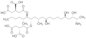 T-2 毒素雖然毒性較強,在奶牛上少有發生,Whitlow發現當日糧中T -2毒素含量在300 ~500μg/kg時,可降低產奶量,同時引起腹瀉和腸炎,增加死淘率。赭曲霉毒素在瘤胃中能被迅速降解成毒性較低的代謝物,因而對牛的生產性能影響不大,除非是瘤胃尚未發育成熟的 犢牛 。伏馬菌素對反芻動物的生理效應比單胃動物弱,FDA (2000 )推薦人類食品中的伏馬菌素總量不應超過2~4mg/kg。被污染的谷物及其副產品在奶牛飼料中的用量不超過 50% 。泌乳牛飼料中伏馬菌素的含量不超過30mg/kg。麥角堿是需要關注的一種毒素 。