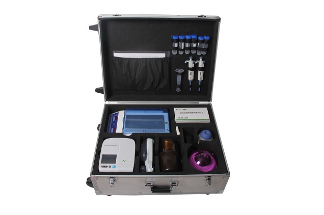 快檢箱結合了膠體金快速、酶聯免疫定量以及色譜法準確的特點,可在8min內快速準確定量的測定出糧油谷物飼料中的霉菌毒素,包括黃曲霉毒素B1、玉米赤霉烯酮、嘔吐毒素、赭曲霉毒素A、伏馬菌素、T2毒素等含量,樣品前處理簡單(僅需7min),六種毒素一次提取即可,操作簡便,只需一步加樣,無需標準品,無需做標準曲線,結果準確可靠且可現場打印,準確性高度符合HPLC法的檢測結果,為霉菌毒素的快速現場檢測提供了一種全新的技術手段,適用于各類原料收儲、飼料加工企業及政府相關監管部門。