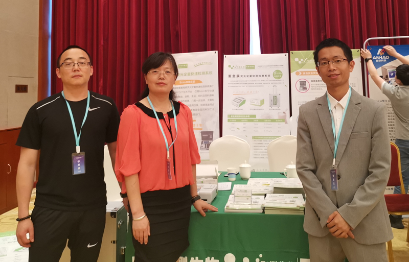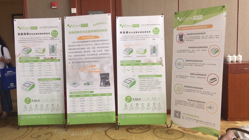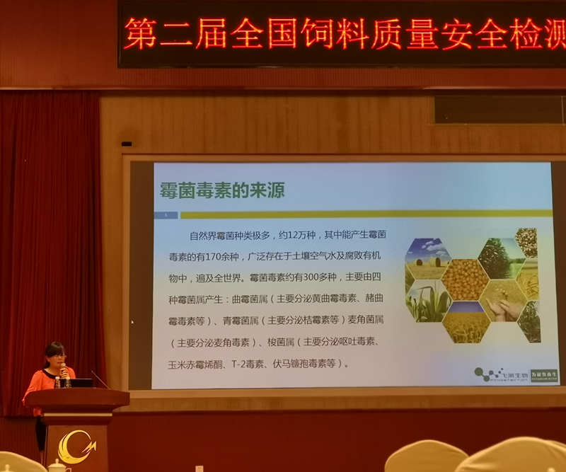 上海飛測生物基于全球領先的熒光定量FPOCT技術平臺,開發了熒光定量快速檢測系統,可在8min內快速準確定量的測定出飼料中的真菌毒素,包括黃曲霉毒素B1、玉米赤霉烯酮、嘔吐毒素、赭曲霉毒素A、伏馬菌素、T2毒素等含量,樣品前處理簡單(僅需7min),六種毒素一次提取即可,操作簡便,只需一步加樣,無需標準品,無需做標準曲線,采用熒光免疫定量分析儀讀數,結果準確可靠且可現場打印,準確性高度符合HPLC法的檢測結果,我們的劉老師也上臺給大家講解了專業的知識和我們公司產品的特點和優勢,來訪的展商紛紛表現出濃厚的興趣,并來到我們的展位前進行了。